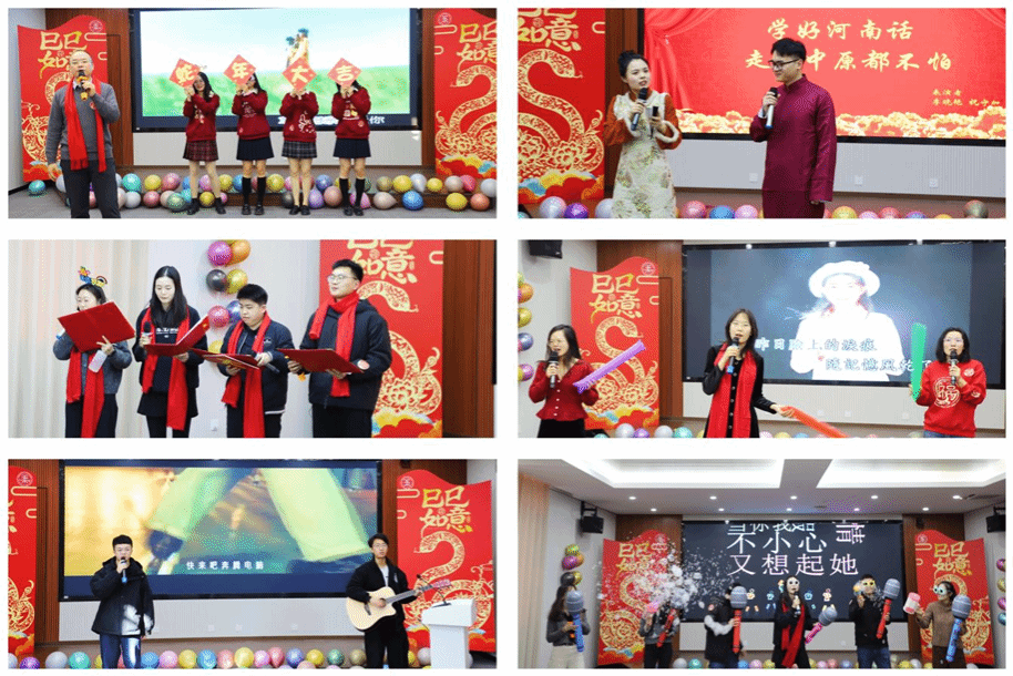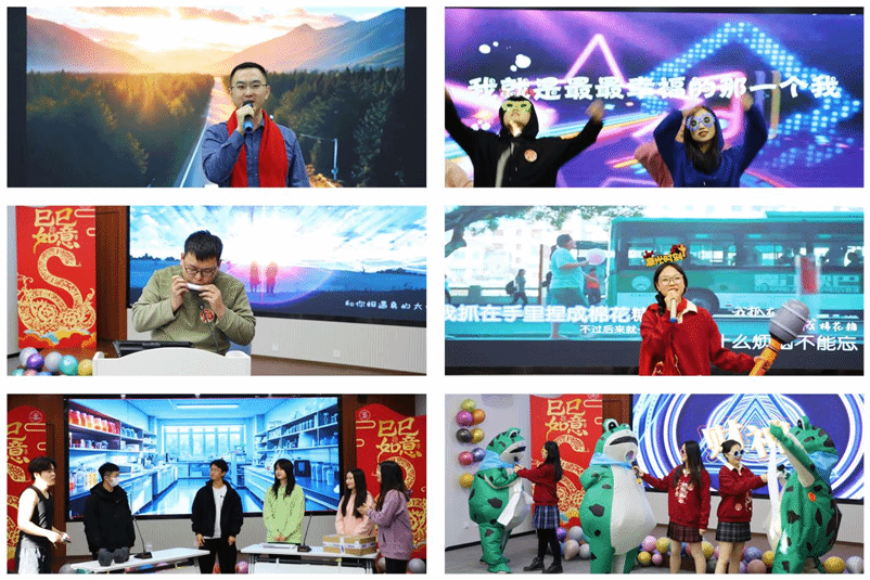 活动伊始,节目《小美满》率先登场,以其轻松愉悦的气氛和动人的旋律拉开了序幕。歌声激昂而充满温情,展现了对未来生活的美好期许,立刻吸引了观众的注意,现场气氛热烈。紧接着,口琴独奏《樱花樱花想见你》缓缓奏响,悠扬的旋律在空气中飘荡,情感细腻而温暖,触动了在场每一位观众的心弦。接下来的歌曲《New Boy》、《明天会更好》、《苹果香》和《呼伦贝尔大草原》等耳熟能详的经典曲目,再度点燃了全场的热情,跳动的音符中满载着对未来无限美好的憧憬与期许。舞蹈串烧《新年快乐&APT》与《惊鸿舞&八方来财&全是爱&Ditto&蛇年行大运》紧接其后,舞者们用欢快的舞步将青春与活力展现得淋漓尽致。每个舞蹈动作都充满了年轻人对生活的热爱与追求,现场的气氛也因这些充满激情与欢乐的舞蹈变得愈加高涨。相声表演《有趣的河南话》则带给观众们一阵阵笑声,在幽默风趣的语言中,大家不仅体会到了轻松愉快的氛围,也深刻感受到了中华文化的丰富多样与深厚底蕴,现场充满了欢笑和共鸣。此外,小品《今天我有事》与朗诵《我爱上班》也赢得了观众的热烈掌声。小品通过幽默诙谐的表演展现了研究生生活中的趣事,而朗诵则通过感人的语言生动诠释了现代职场中拼搏努力的精神面貌。校园生活的丰富多彩,以及在职场中不懈奋斗的决心,深深鼓舞了每一位在场的观众