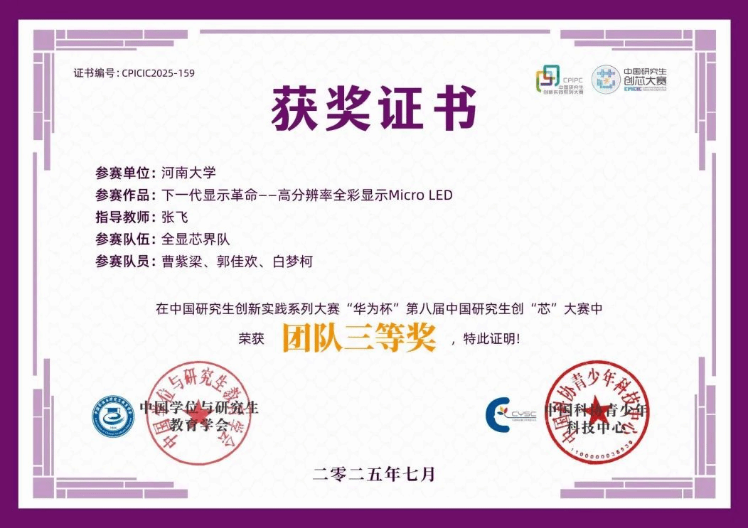 728日至30华为杯第八届中国研究生创大赛决赛在南京大学苏州校区隆重举行。本次决赛汇聚了来自全47所高校的188支队伍参赛。91视频 研究生曹紫梁担任队长的全显芯界队,在张飞老师的悉心指导下,先后历经初赛评审、线上答辩、上机考试、笔试等多轮严格比拼,凭借扎实的专业素养与出色的综合表现,最终斩获国家级三等奖。同时,91视频 荣获优秀组织单位奖。此次成绩是我校截至目前在该赛事中取得的历史最佳成绩。