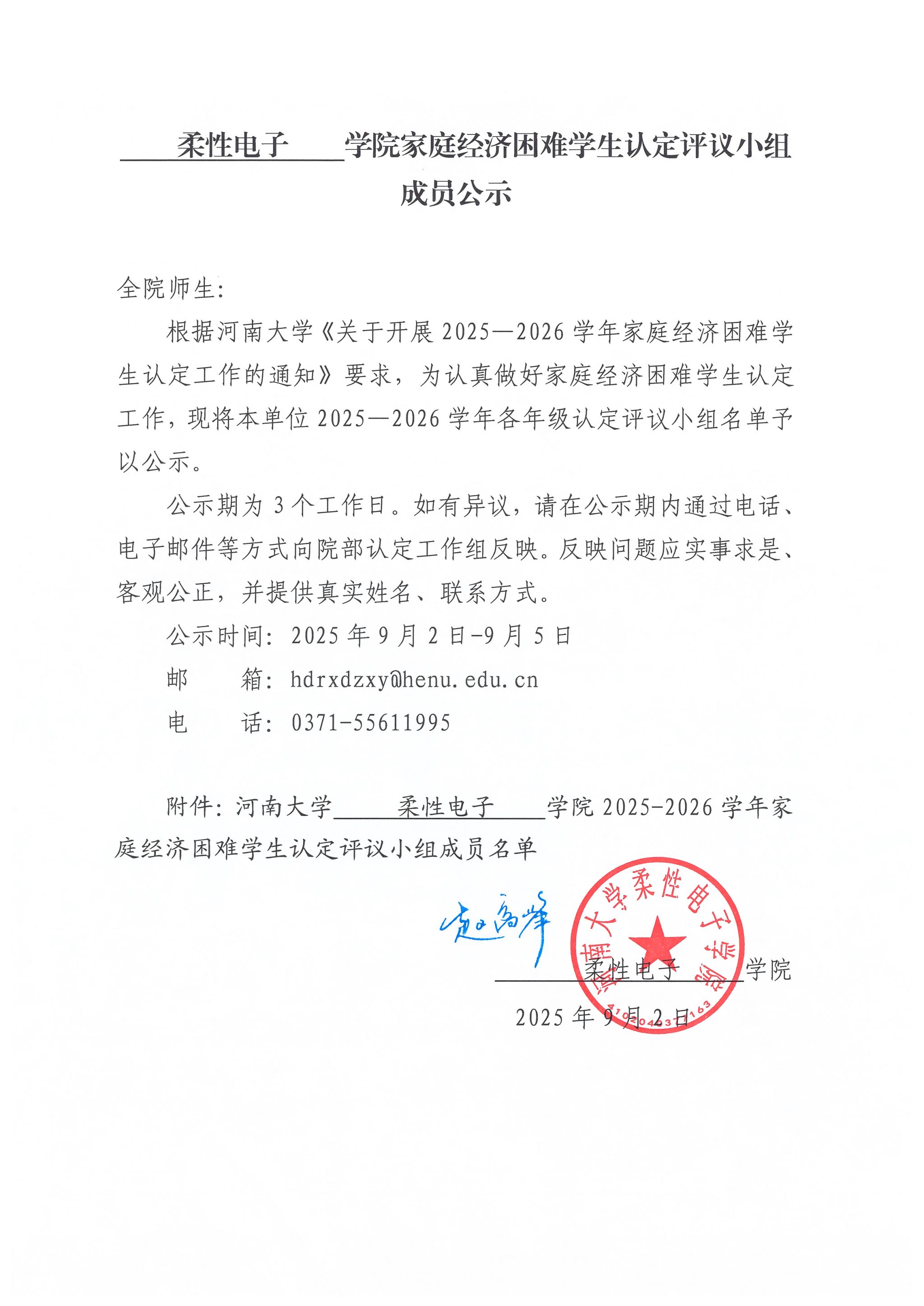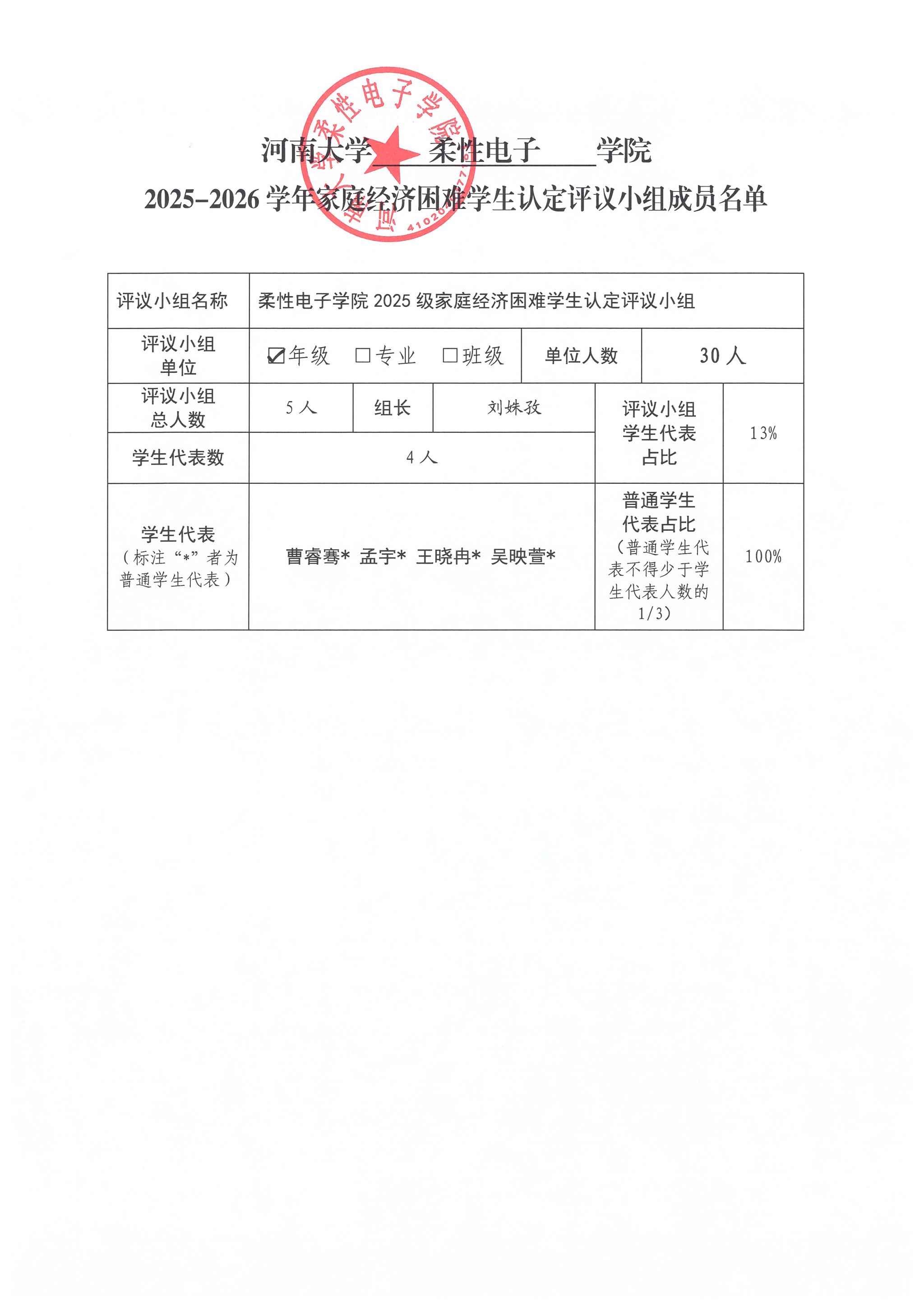 91视频 2025-2026学年家庭经济困难学生认定评议小组成员公示